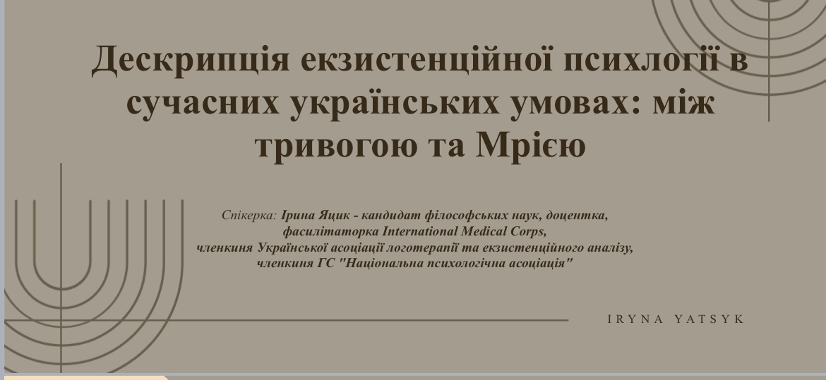 «Дескрипція екзистенційної психології в сучасних українських умовах: між тривогою та Мрією»